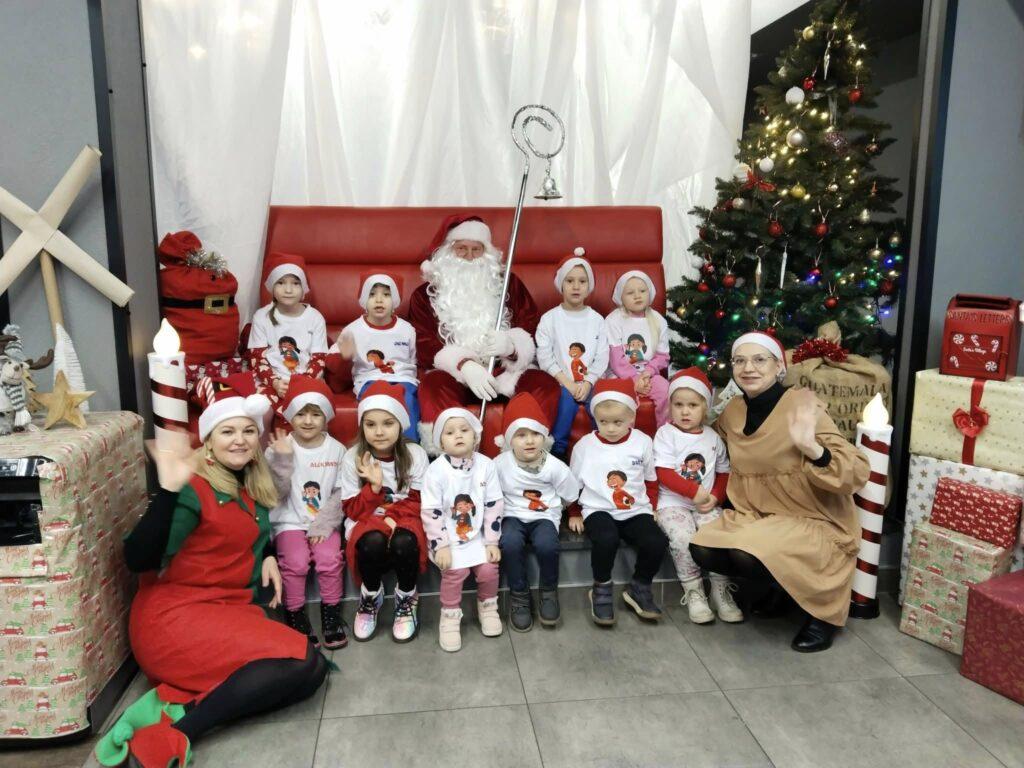 Przedszkolaki odwiedziły grotę św. Mikołaja w Hotelu Loft w Suwałkach. Był to niezwykły czas ze Św. Mikołajem. Dzieci wysłuchały bajki o elfach, wykonały ozdobne torby świąteczne, wspólnie z Elfami i Mikołajem tańczyły do świątecznych piosenek. Po usunięciu swoich złych uczynków narysowanych na kartkach, otrzymały prezenty i miały możliwość opowiedzieć o swoich wymarzonych prezentach pod choinką. Poniżej galeria zdjęć z tego wydarzenia.